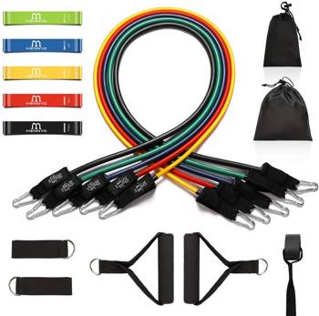 El kit de gomas está compuesta de 5 bandas de manguera elásticas y 5 gomas elásticas de musculación, con 5 niveles de resistencia.