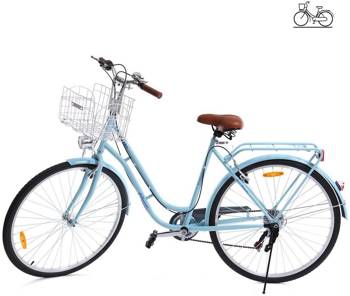 El modelo de la bicicleta es estilo holandés, con un manillar alto, sillín con resortes dobles, los neumáticos tienen una medida de 28×1,75.